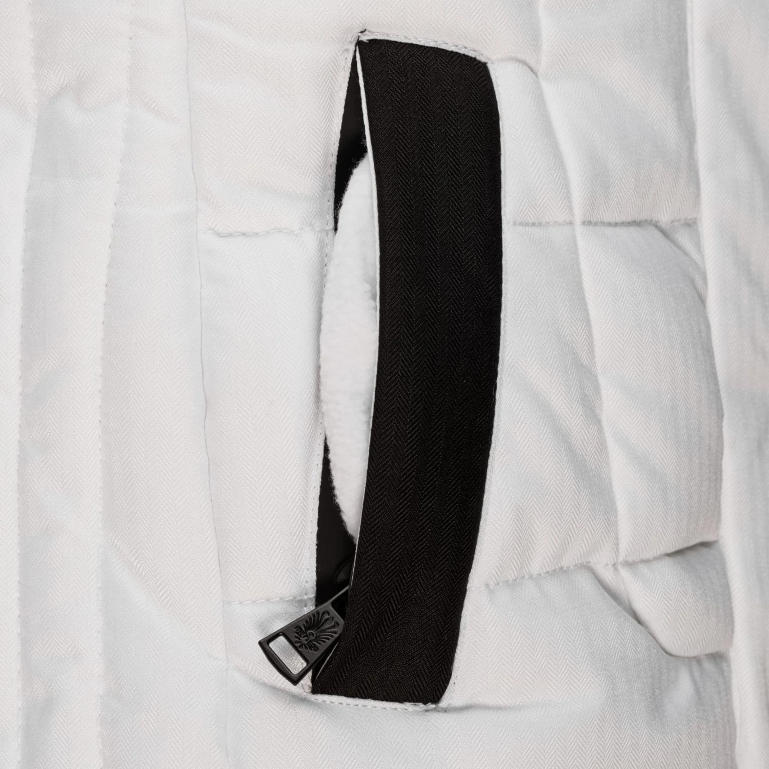 Bloc de couleurVeste matelasséeFermeture éclairBoutonnière avec boutons pressionCapuche avec fausse fourrure amovibleBord côteléCoupe cintréePoches latéralesDoublure en peluchePiqûres de finitionsCôté intérieur légèrement grattéDoublure chaudeFermeture à glissière