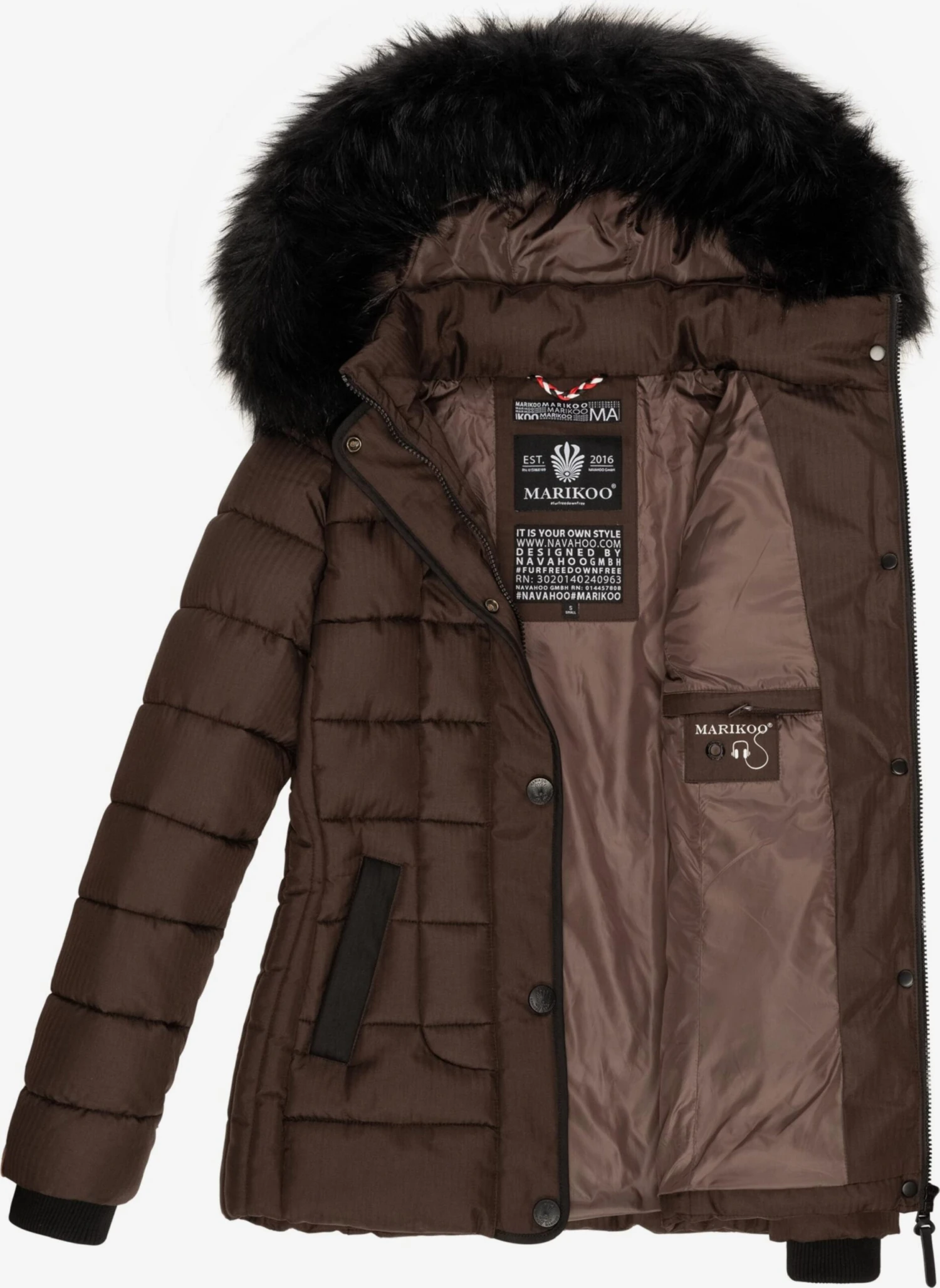 Matériau supérieur : 100% Polyester – PESDoublure : 100% Polyester – PESRembourrage : 100% Polyester – PESDoublure des manches : 100% Polyester – PESFausse fourrure : 90% Polyacrylique – PC, 10% Polyester – PESÉlasticité : Légèrement élastiquePays d’origine : Chine